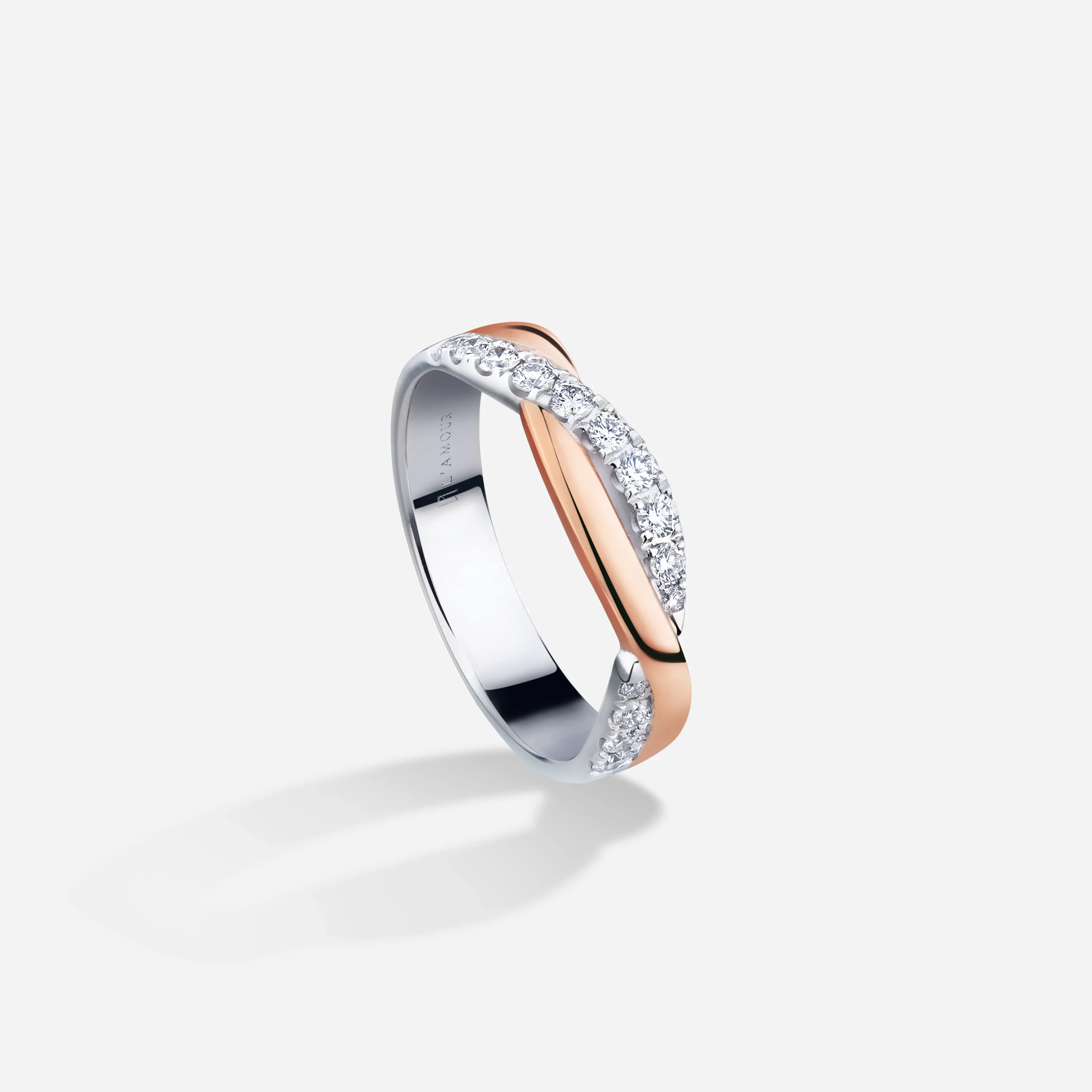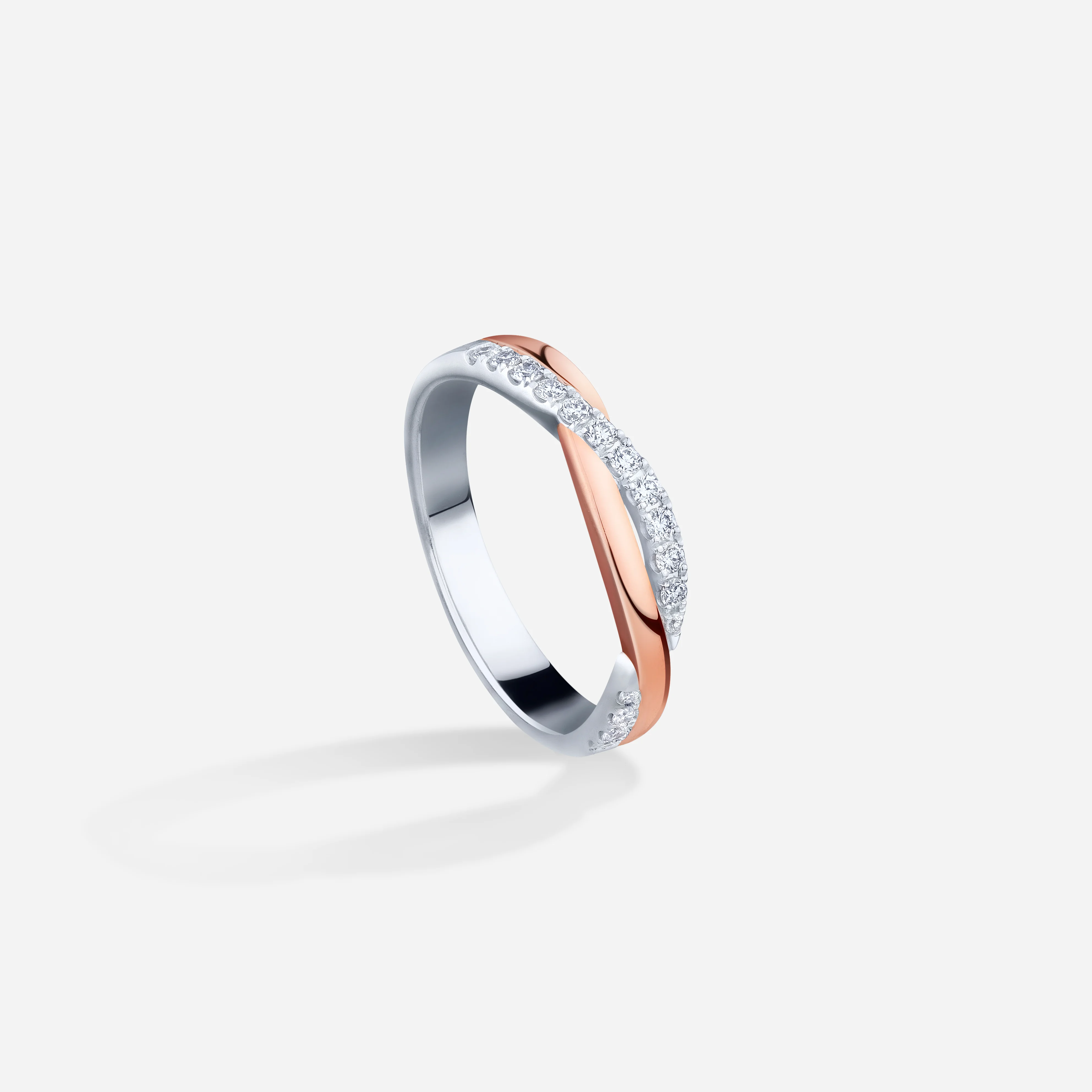玫瑰金代表金黃暖陽,K白金鑲鑽象徵銀白雪地中飛舞著耀眼精緻的雪花。