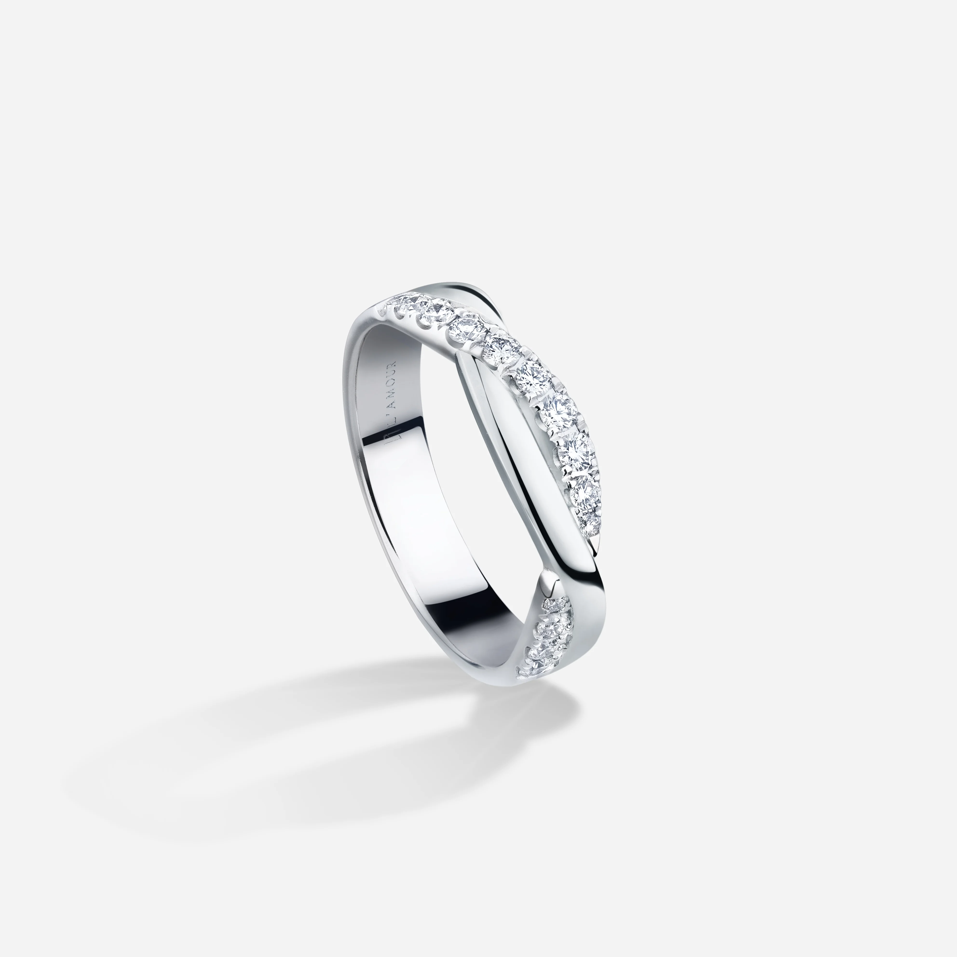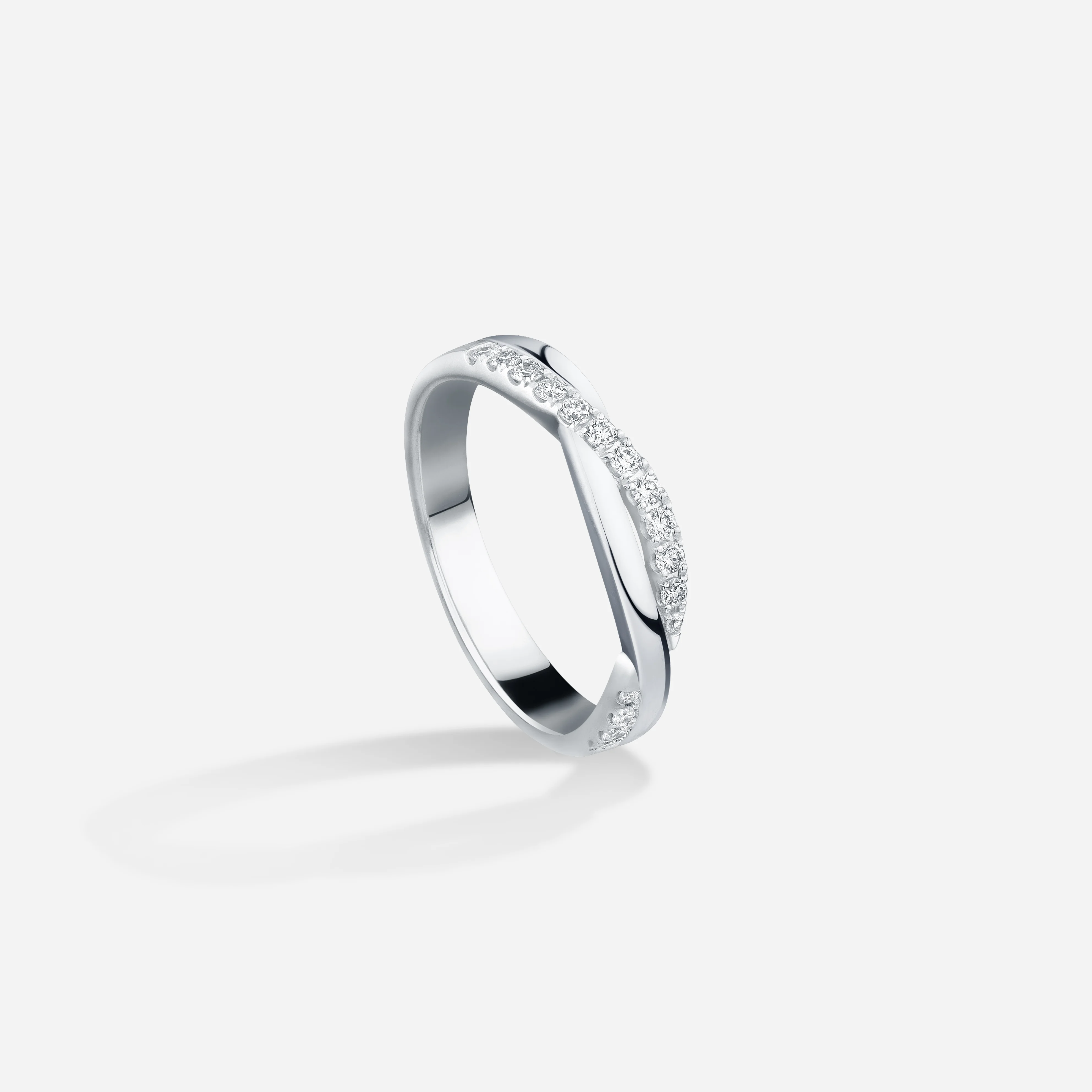 K白金鑲鑽象徵銀白雪地中飛舞著耀眼精緻的雪花。